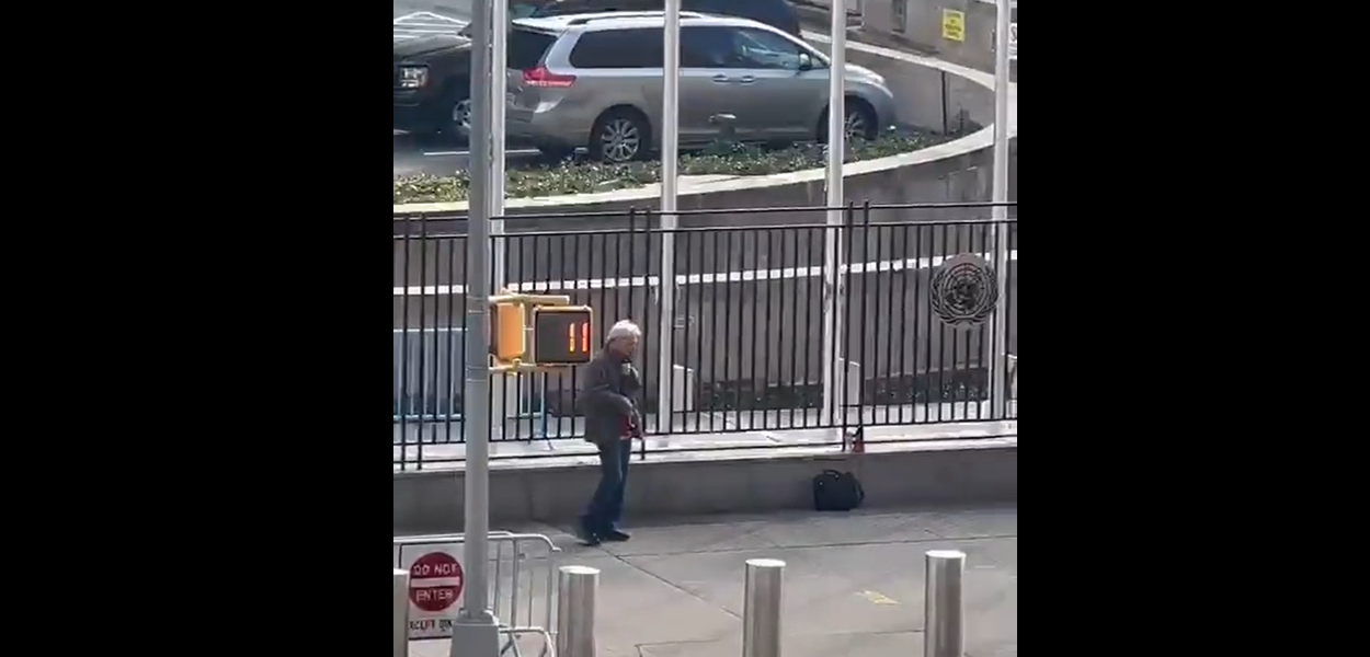 A polícia tenta manter um diálogo com o homem que caminha de um lado para o outro em frente à sede da ONU. Não há indicações de que o homem seja funcionário ou tenha qualquer ligação com a ONU, segunda a polícia, que afirma ainda que não há ameaças ao público.