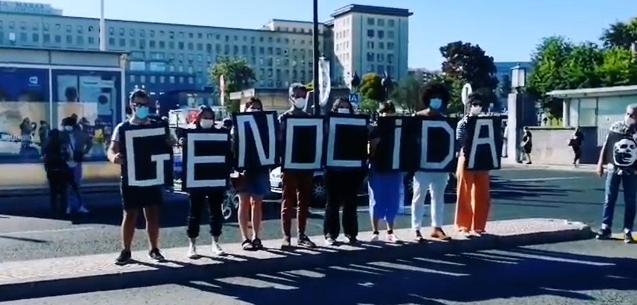 247- Organizado pelo Coletivo Andorinha, um grupo de manifestantes realiza nesta terça-feira (26), em Lisboa, manifestação em protesto contra o ministro da Saúde, Marcelo Queiroga. Os atos aconteceram em frente a Faculdade de Medicina Nova Lisboa.