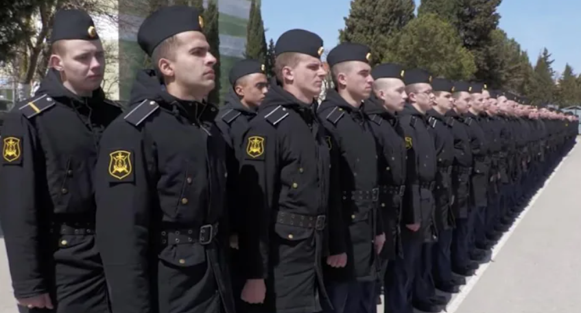 No vídeo de 26 segundos, gravado em Sebastopol, na Crimeia, cerca de 100 marinheiros podem ser vistos diante do almirante Nikolai Yevmenov. Moscou sustenta que todos os marinheiros foram resgatados do Moskva.