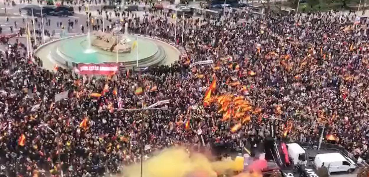 Na capital, milhares de pessoas se reuniram na prefeitura carregando bandeiras da Espanha e entoando slogans contra o primeiro-ministro, Pedro Sánchez. Os manifestantes pediam, também, a demissão imediata do premiê.