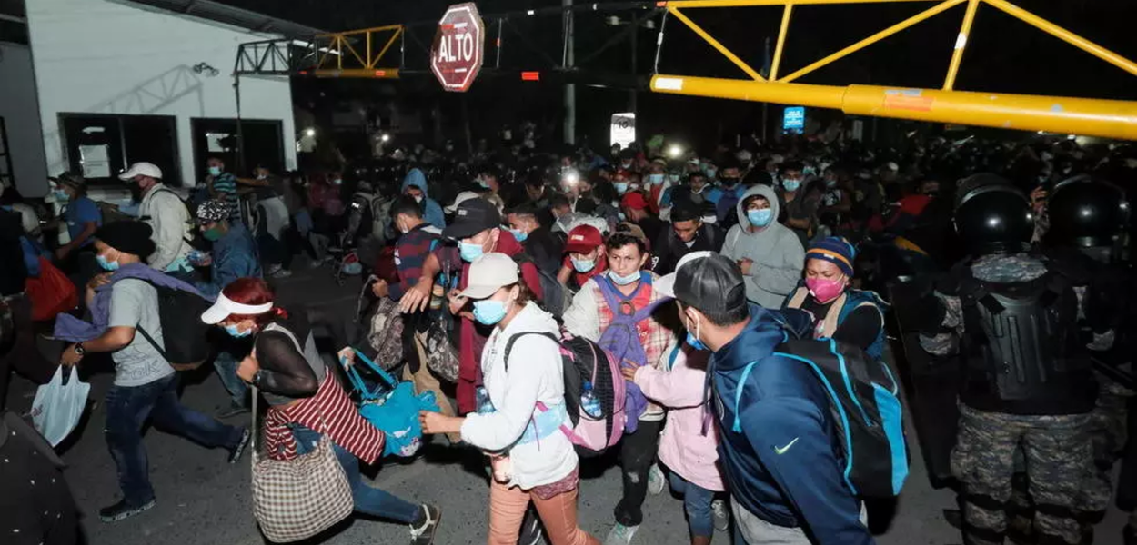Na fronteira, uma primeira linha da polícia hondurenha foi vencida. Em seguida, os migrantes avançaram em correntes humanas até onde os guardas guatemaltecos os esperavam. As autoridades esclareceram que apenas aqueles que tinham os documentos em ordem e um teste negativo de Covid-19 poderiam passar. Porém, apesar de muitos não terem realizado o teste, os migrantes pressionaram a marcha e conseguiram entrar no país sem confrontos.