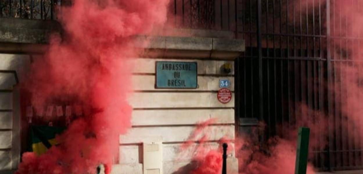 Protesto na embaixada brasileira em Paris denuncia “genocídio” no Brasil