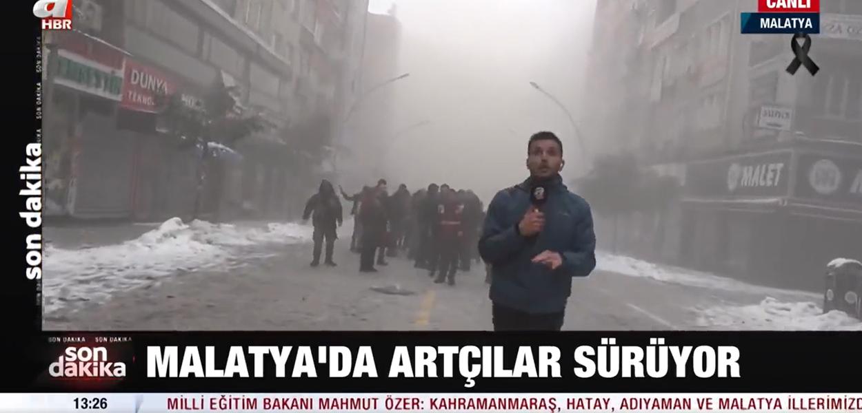 De acordo com o portal Notícias da TV, o fato ocorreu na manhã desta segunda-feira (6) e teve até choro de uma colega do repórter. "Foi muito difícil, estávamos indo para o hotel e seguiríamos a transmissão de lá. Mas, houve um abalo secundário e de repente, estávamos na zona do terremoto", contou Esra Arpa, do canal A Haber.