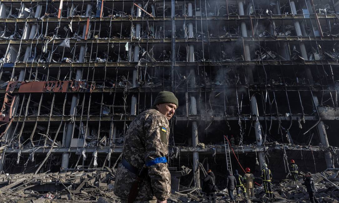 As forças russas anunciaram ter destruído nos arredores de Kiev um shopping que guardava uma bateria de sistemas de lançadores múltiplos de foguetes.