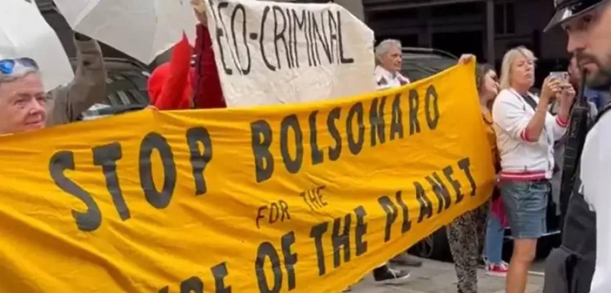 247 - Manifestantes ingleses e brasileiros repudiaram a visita de Jair Bolsonaro em Londres, no Reino Unido, onde foi para participar do funeral da rainha Elizabeth II.