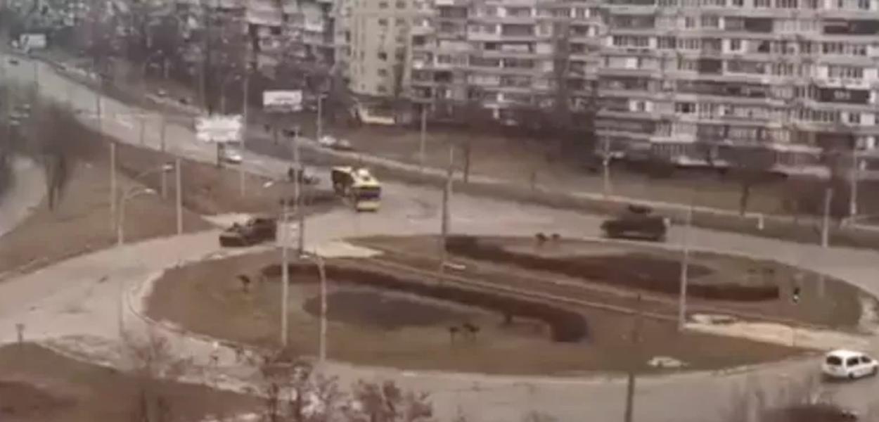 Segundo informações do site Newsweek, moradores de Obolon filmaram tropas russas chegando à capital da Ucrânia