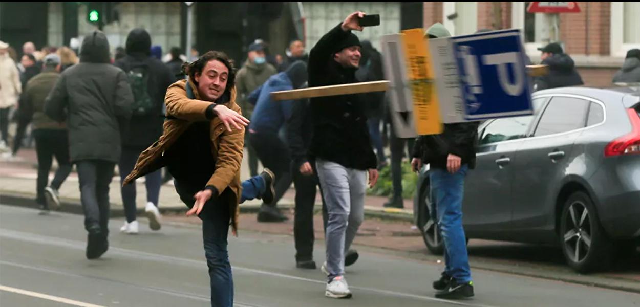 As pessoas reagiram ao toque de recolher e à extensão do bloqueio até 9 de fevereiro tomando as ruas no fim de semana passado. Protestos violentos estouraram em todo o país, com epicentro em Amsterdã.