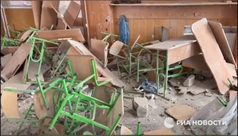 A agência de notícias russa RIA Novosti enviou um correspondente para reportar o episódio. Em vídeo da agência divulgado pela RT, aponta-se que um míssil abriu um buraco em uma das paredes da sala de aula.