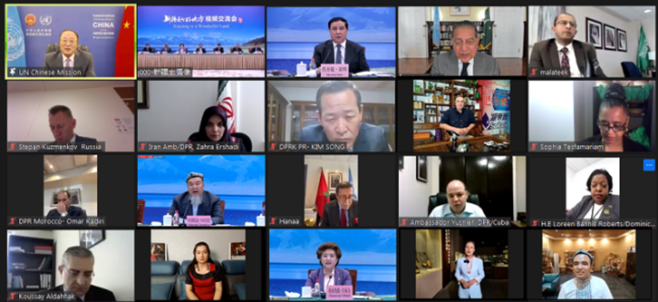Participaram do evento o diretor do Comitê Permanente da Assembleia Popular da Região Autônoma Uigur de Xinjiang, Shawkat Imin, o vice-diretor do Comitê Permanente da Assembleia Popular da Região Autônoma Uigur de Xinjiang, Li Xuejun, o representante permanente da China na ONU, Zhang Jun, e o vice-representante permanente da China na ONU, Dai Bing. Também presenciaram a videoconferência embaixadores e diplomatas de diferentes países nas Nações Unidas, oficiais dos órgãos da ONU, jornalistas e representantes de organizações não-governamentais, com um total de 120 pessoas. Cerca de mil pessoas assistiram à transmissão do evento ao vivo.