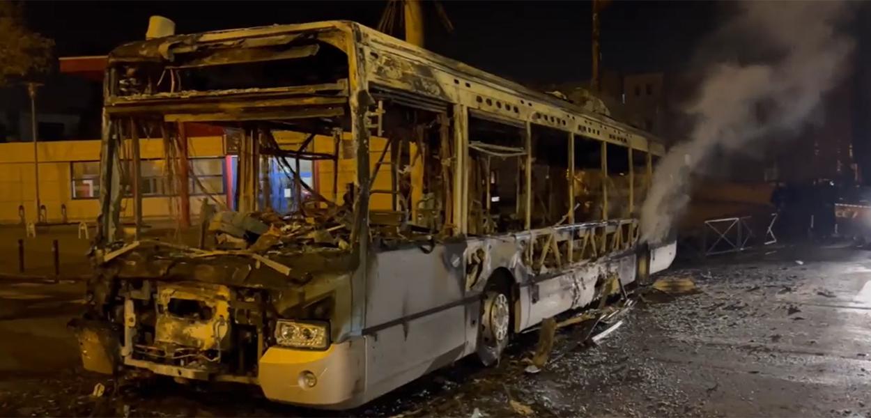 O motorista de um ônibus que passava pelo local teve que interromper o trajeto. De acordo com os policiais, trinta pessoas encapuzadas e armadas com barras de ferro, forçaram o motorista do ônibus a descer e retirar os passageiros. Em seguida, o veículo foi incendiado.