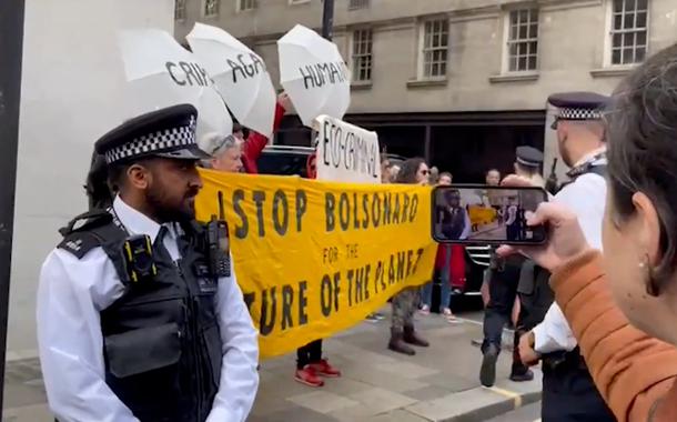 “Estávamos lá para contestar sua presença no Reino Unido e mostrar solidariedade a Dom e Bruno, mas também a todos os indígenas”, disse Domonique Davies