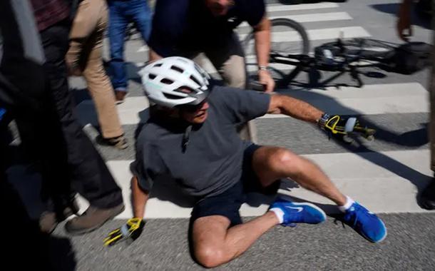 O tombo inesperado ocorreu depois que ele parou e não conseguiu soltar os sapatos dos pedais