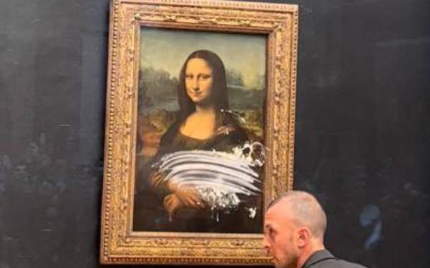 O homem arremessou um pedaço de bolo contra a pintura de Leonardo da Vinci