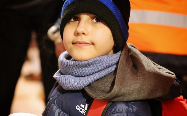 Um menino de 11 anos cruzou a fronteira da Ucrânia com a Eslováquia sozinho, carregando uma mochila, um saco plástico, um passaporte, e com um número de telefone na mão