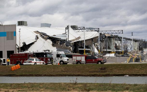 O centro de distribuição foi atingido na última sexta-feira (10). A força dos ventos foi tão forte que o telhado foi arrancado e o prédio desabou sozinho