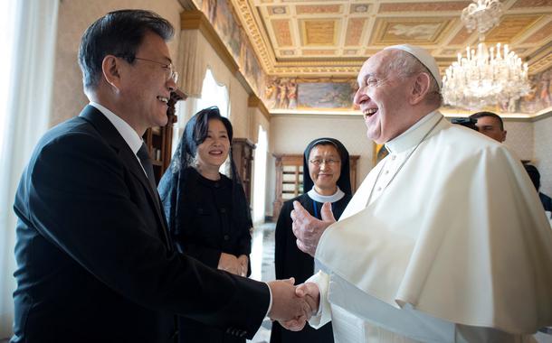 O presidente, que deixa o cargo em maio,disse a Francisco que uma visita papal a Pyongyang ajudaria a ressuscitar o processo de paz na Península Coreana