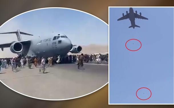 Circula nas redes sociais cenas de pessoas sendo jogadas para fora de um avião norte-americano após a decolagem no Afeganistão. Elas teriam se escondido ou amarrado fora da aeronave. Os EUA estão...