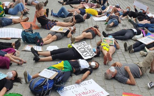 Brasileiros pelo mundo se levantam para denunciar o descaso de Bolsonaro com a vida. Escândalos de corrupção envolvendo a compra de vacinas, negacionismo e genocídio indígena entram na pauta