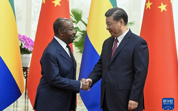 Antes do encontro, Xi Jinping realizou uma cerimônia de recepção para saudar o presidente gabonês