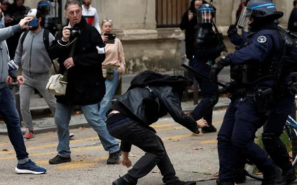 Os protestos têm reunido grandes multidões desde janeiro contra a principal reforma do segundo mandato de Macron, que eleva a idade de aposentadoria para 64 anos