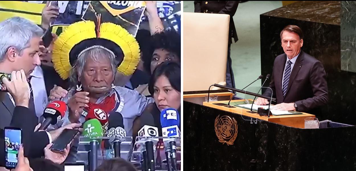 Em seu discurso na ONU, criticado mundialmente, Jair Bolsonaro afirmou que o cacique era usado como “peça de manobra por governos estrangeiros na sua guerra informacional para avançar seus interesses na Amazônia.”