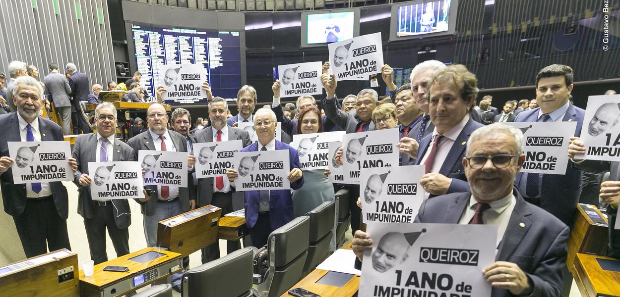 Parlamentares protestam no aniversário de um ano de escândalo Queiroz
