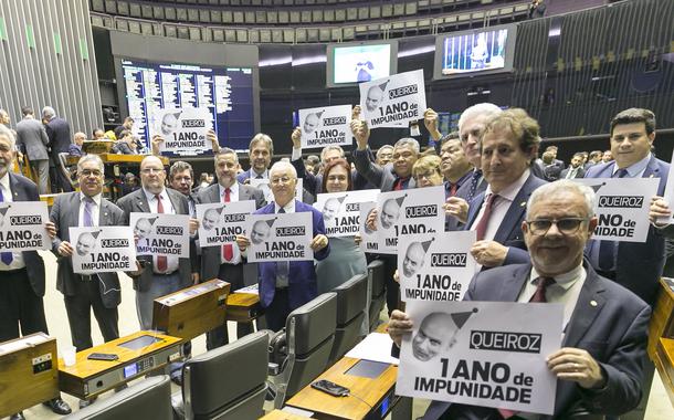 “Eu trouxe aqui um bolo para a gente comemorar um ano do caso Queiroz”, disse o deputado Alexandre Frota (PSDB) sobre a paralisação das investigações do ex-assessor do clã Bolsonaro Fabrício Queiroz