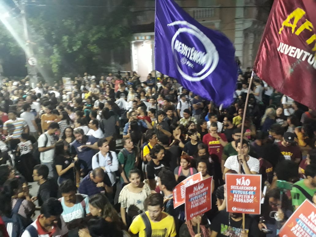 247 - Entidades que representam estudantes, professores e servidores da Universidade Federal do Ceará (UFC) protestam em ruas próximas à instituição na noite desta terça-feira 20 contra a nomeação do novo reitor, Cândido Albuquerque.
