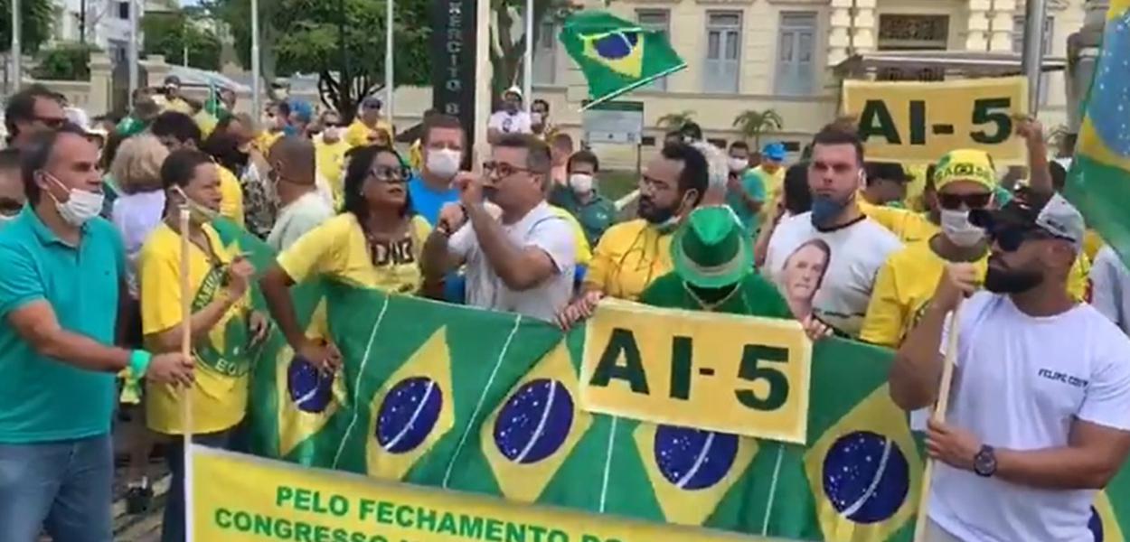 Apesar de impedidos por um decreto do prefeito ACM Neto (DEM) de se aglomerarem, um grupo de bolsonaristas promoveu um ato em apoio ao governo Jair Bolsonaro, em frente a um quartel de Salvador, onde pediram um novo AI-5
