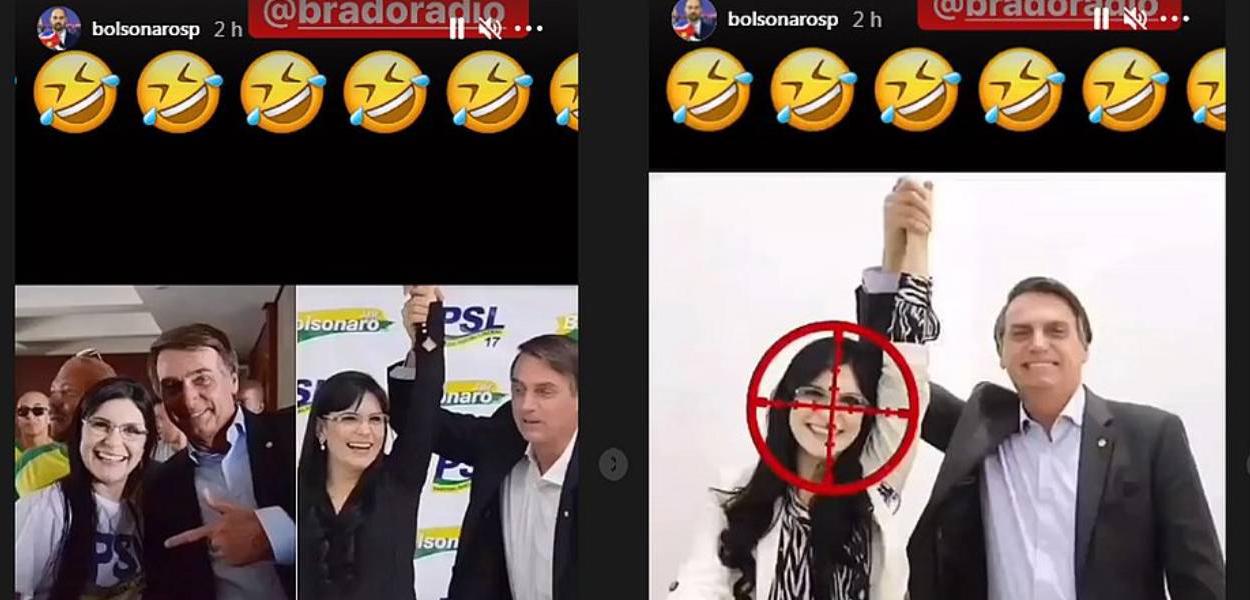 Eduardo Bolsonaro postou em seu Instagram uma foto de Dayane ao lado de seu pai a chamando de “traidora“ e ilustrou a foto com uma mira de arma de fogo na cabeça da deputada.