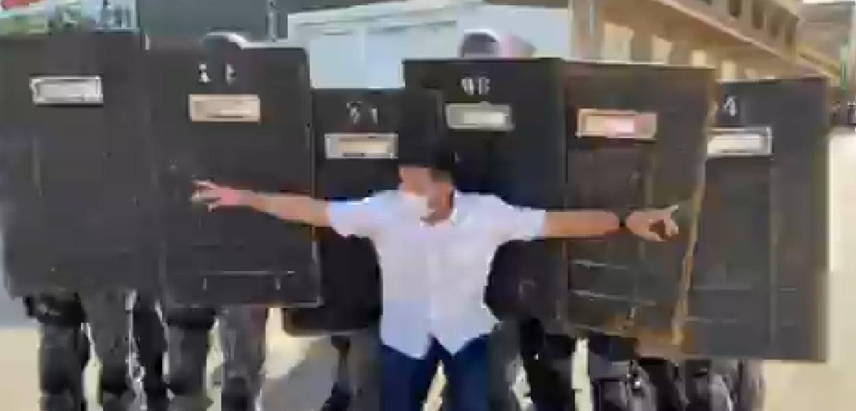 Após sua resistência para seguir aglomerando no local, policiais lançaram spray de pimenta contra ele, o que gerou o lamento do bolsonarista. “Isso aqui é a ditadura do Camilo Santana", esbravejou, ao criticar o governador do Ceará.