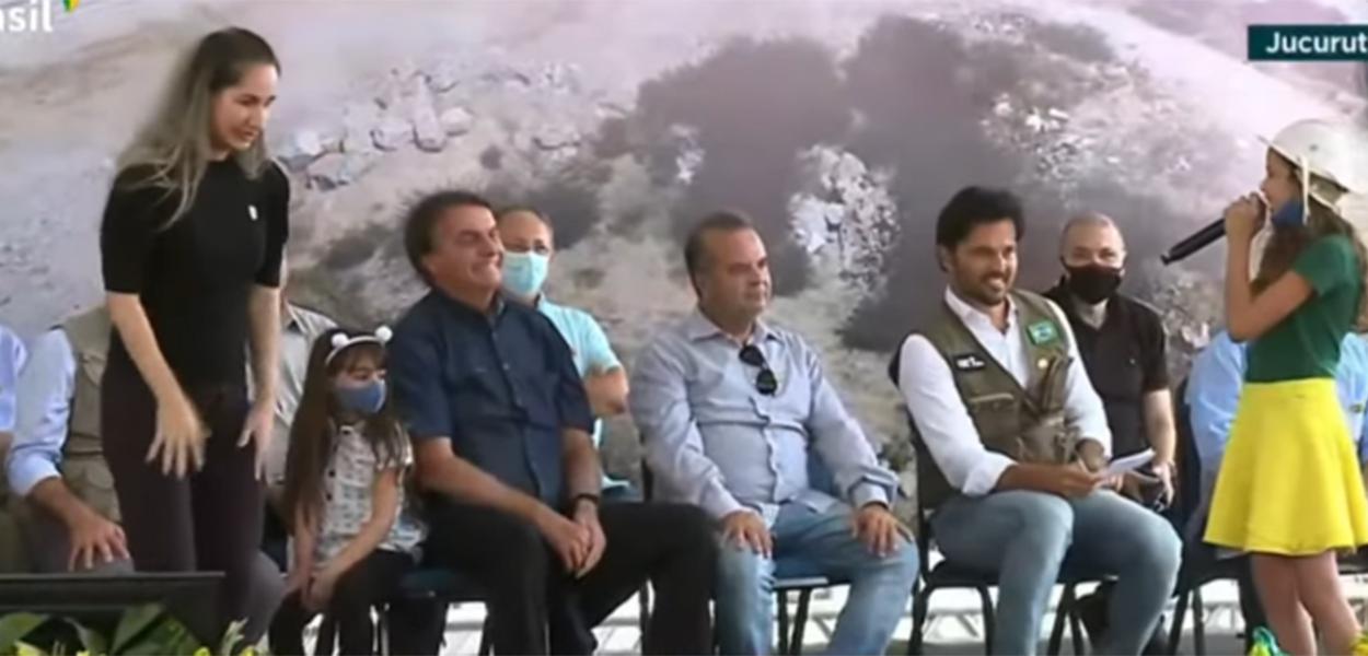 247 - Em evento em Jucurutu (RN), Jair Bolsonaro pediu que uma criança de 10 anos, que recitou uma poesia na abertura da cerimônia, tirasse a máscara de proteção individual, medida sanitária recomendada contra a pandemia do novo coronavírus. As informações são do portal UOL.