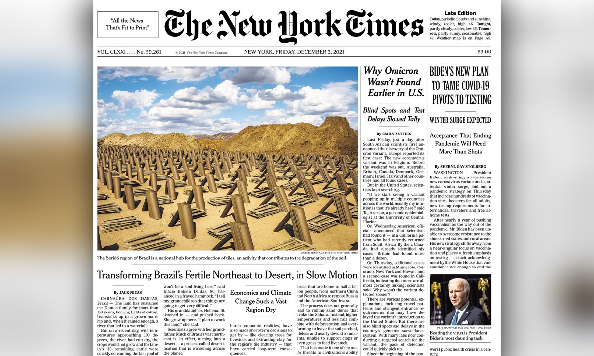 O jornal The New York Times apresentou em sua primeira página um alerta sobre a transformação do “Nordeste fértil do Brasil em deserto, em câmera lenta”