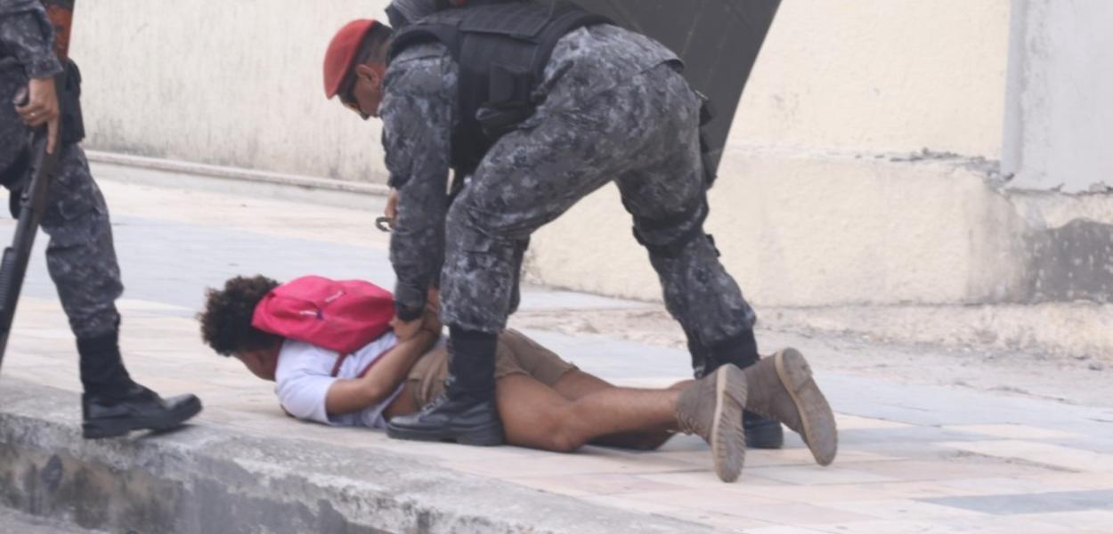 A violência da polícia militar cearense se abateu sobre mulheres, crianças e jovens, ainda que não tenha deixado feridos. Mas mulheres foram arrastadas e os manifestantes dispersos com gás de pimenta e balas de borracha. Ao final, duas parentes de presos e um jovem do movimento negro foram levados presos à delegacia, acusados de desobediência.