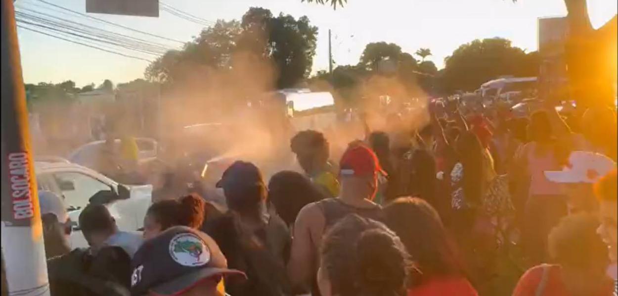 PM usa spray de pimenta contra manifestantes que vaiaram Bolsonaro em Porto Seguro (vídeo)