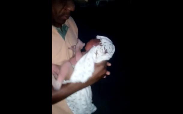 O bebê estava em meio à vegetação e foi encontrado pelo dono do terreno, um lavrador que capinava a terra no momento que viu o menino. O recém-nascido é filho da neta do trabalhador