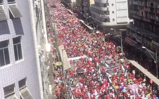 Imagens aéreas mostram as ruas da capital de Pernambuco tomadas de manifestantes pelo Fora Bolsonaro