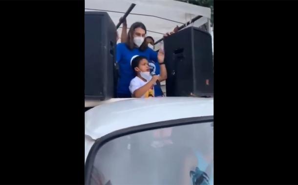 Em Salvador (BA), o garoto Nicolas, de apenas 8 anos, conduziu o ato no carro de som e ganhou aplausos dos manifestantes pelo teor do discurso