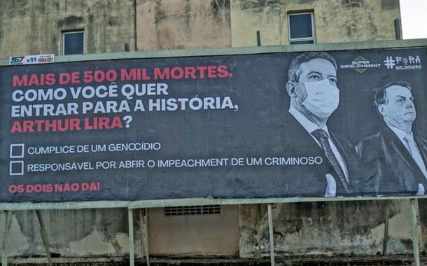"Mais de 500 mil mortes. Como você quer entrar para a história, Arthur Lira?", questiona um dos painéis em Arapiraca, terceira cidade que mais votou em Lira em 2018