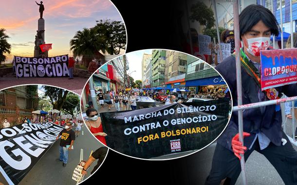 Um grupo de manifestantes realizou nas ruas do centro de Salvador a “Marcha do Silêncio contra o Genocídio”, pedindo a saída de Jair Bolsonaro da presidência, destacando o alto número de mortes por...