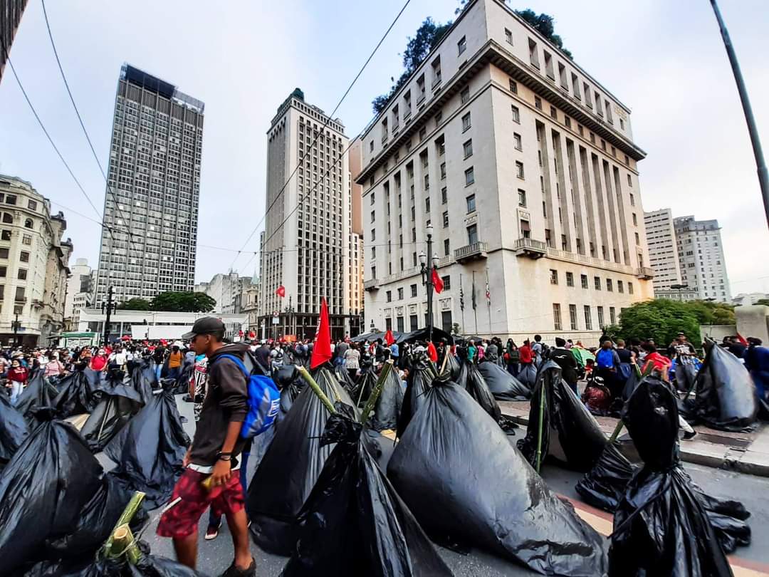 Mais cedo, centenas de militantes do movimento realizaram uma passeata no centro de São Paulo (SP) até a sede da prefeitura, em protesto pelo direito à moradia, contra os despejos e contra a falta de diálogo do prefeito Ricardo Nunes (MDB).