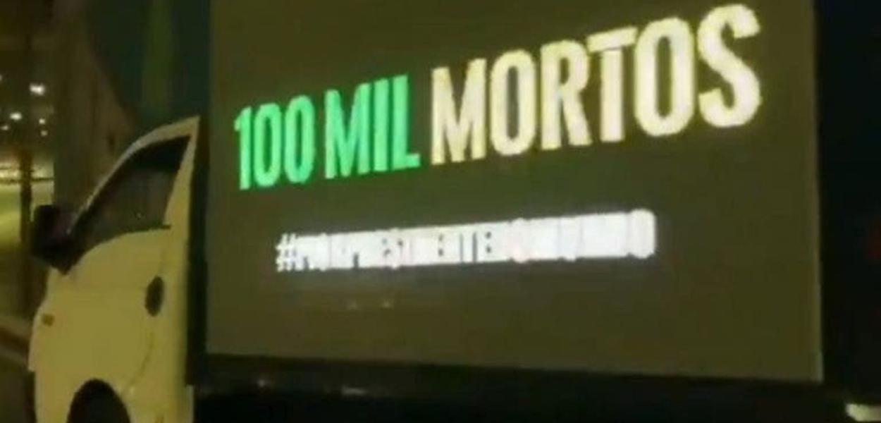 Caminhão com tela gigante circula por SP mostrando vídeos de Bolsonaro falando bobagens sobre a Covid-19 (VÍDEO)