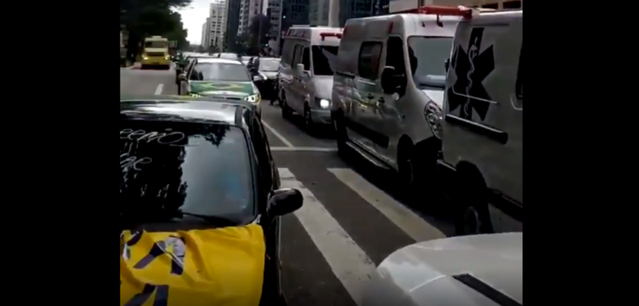 Carreata bolsonarista para Paulista, trava ambulâncias e chama Doria de comunista