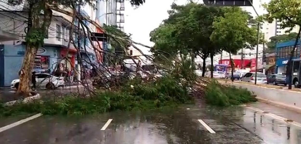 O temporal causou queda de árvores, alagamentos, transtorno no transporte público e fechamento de aeroporto