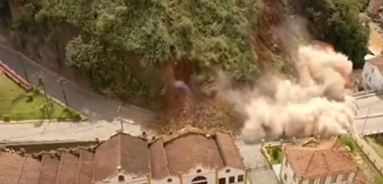 Veja o momento exato do deslizamento que destruiu o casarão.
