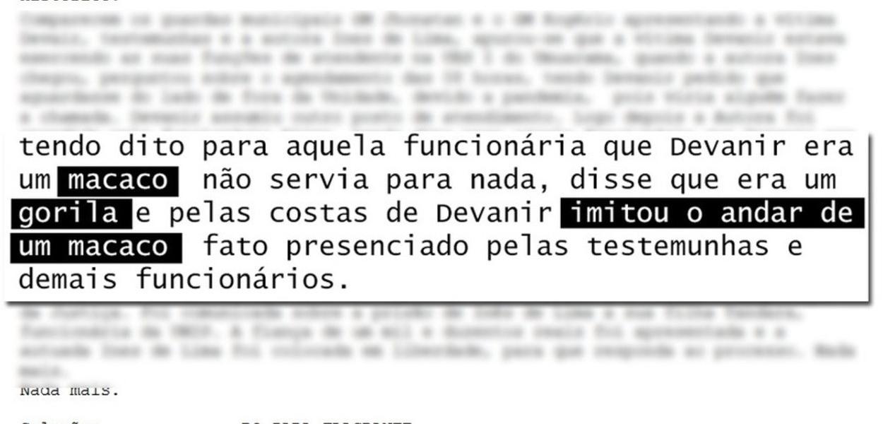 Segundo o que consta no Boletim de Ocorrência registrado, que contou com o relato de testemunhas, a mulher tinha uma consulta marcada para às 8h da manhã e, quando chegou na unidade de saúde, o funcionário vítima das ofensas racistas pediu para que ela aguardasse na parte de fora do local, em respeito às medidas de segurança para a Covid-19.