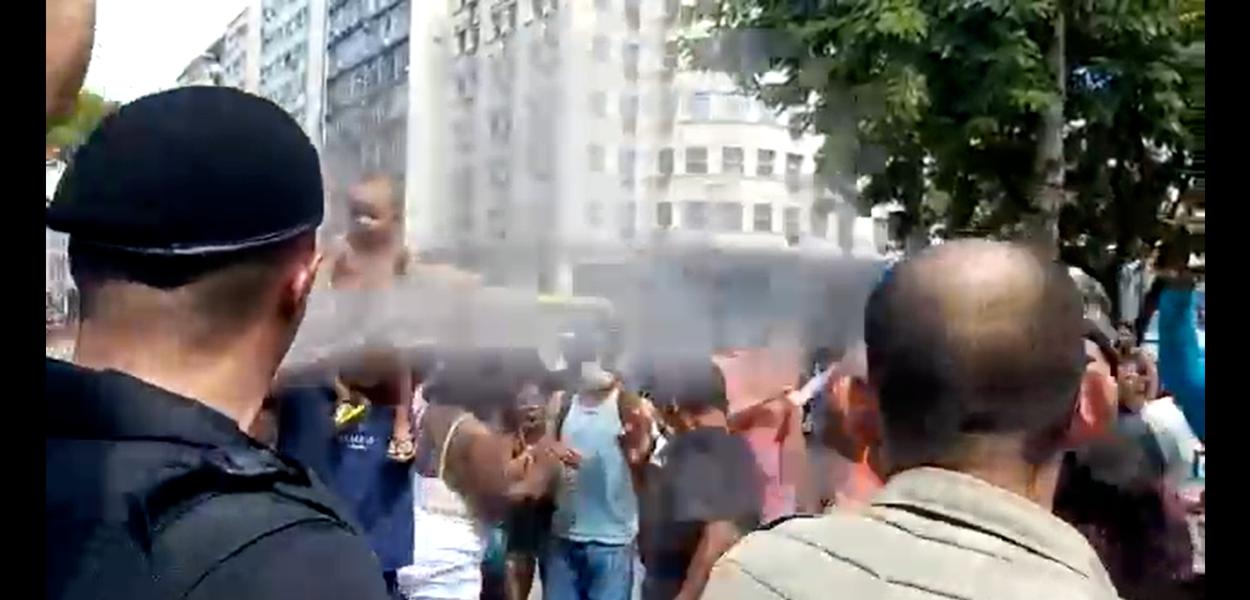 A Guarda Municipal, que atuava para conter a manifestação, utilizou spray de pimenta contra os presentes. Uma criança foi atingida.
