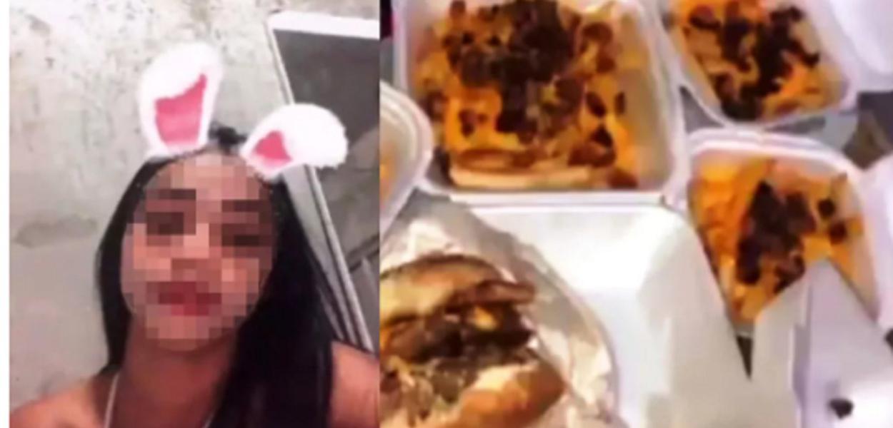 No vídeo postado pela jovem, que soma mais de 10 mil seguidores em seu perfil em uma rede social, ela apresenta o combo de lanches que comprou, mostrando que estava com outras pessoas no momento da gravação, e diz: