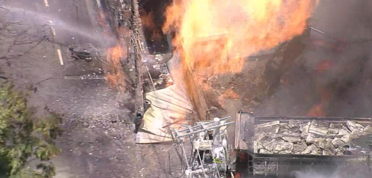A causa do incêndio foi o rompimento de uma tubulação de gás por uma escavadeira.