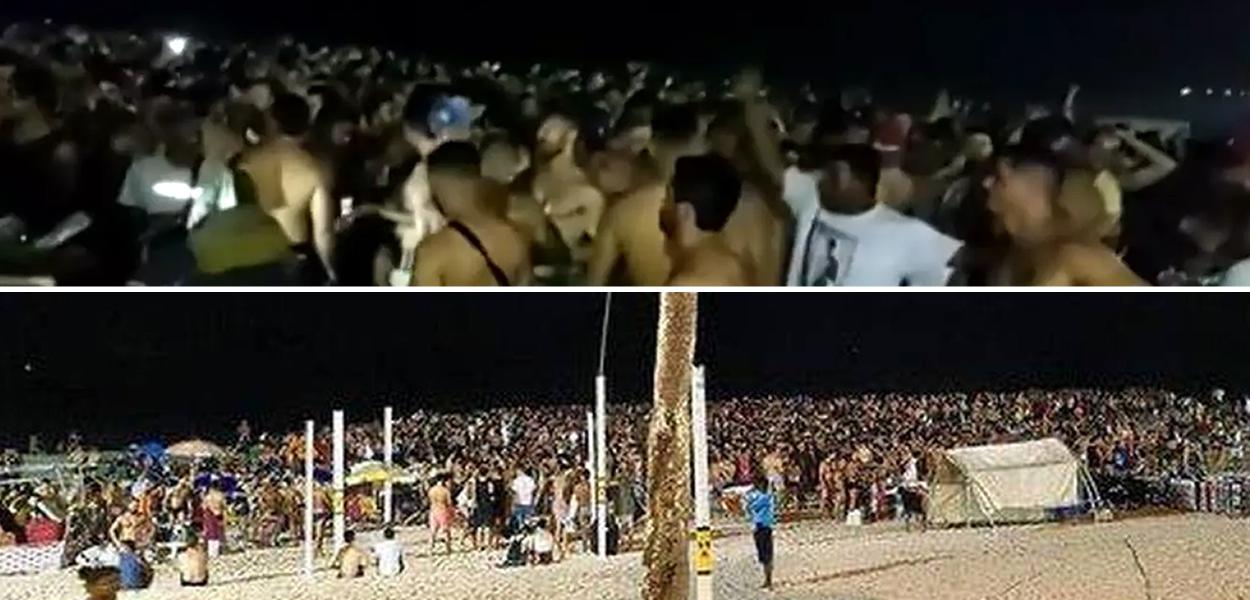 Internautas indignados, por conta da quebra do isolamento social, divulgaram vídeos mostrando centenas de pessoas reunidas, a maioria sem máscara.
